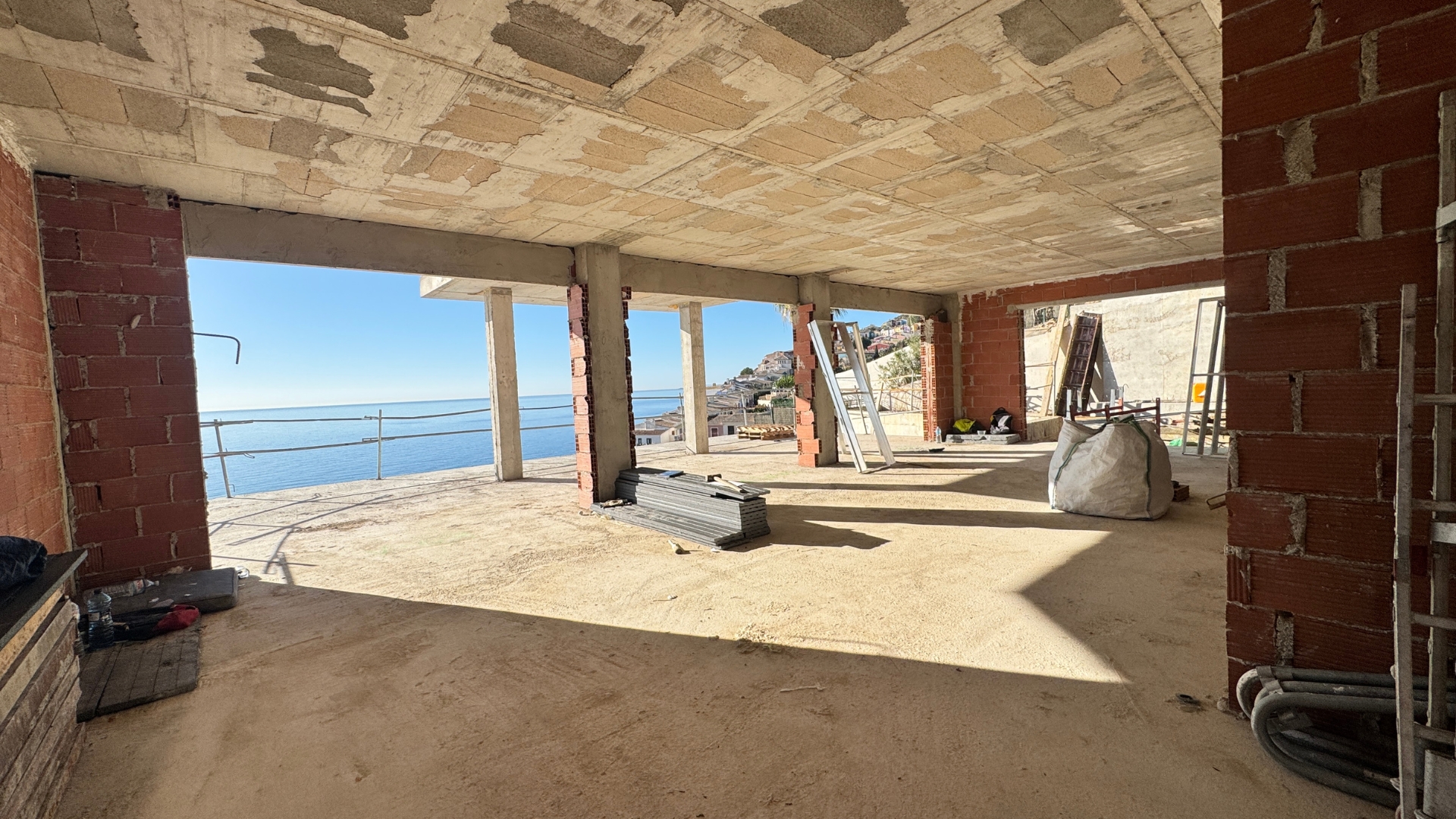 El acceso principal, por debajo de la línea de calle, es en la planta baja que cuenta con una cocina abierta al comedor de 44 metros cuadrados y un gran salón de 34 metros cuadrados. No existe separación visual y desde ambas estancias se accede a una gran terraza de 59 metros con vistas al mar.